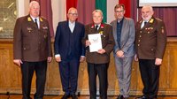 Die Auszeichnung „Florian 2025“ wurde an Norbert Kneifel verliehen. Er wurde damit für die Organisation der Bausteinaktion für das neue Feuerwehrhaus sowie für seine jahrzehntelange Tätigkeit im Bereich der Öffentlichkeitsarbeit und als Schriftführer geehrt.