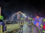 Auf Grund der massiven Brandlast wurden umliegende Gebäude geschützt und gleichzeitig versucht den Brand einzudämmen. Ein 100m³ Löschwasserbehälter und das ortliche Hydrantennetz reichte jedoch nicht aus, es musste eine Löschwasserversorugng über eine lange Wegstrecke errichtet werden.