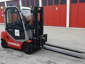 Er dient natürlich zu Arbeiten im Lager. Aber auch zum Transport von Altautos für Schnittübungen und zum Bewegen von Mulden kann er gut eingesetzt werden.
